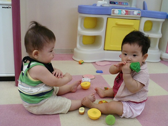 同じ位かもう少し小さな赤ちゃんたちがハイハイしながら