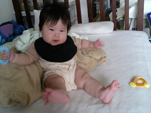 まだ首はすわってないけど、だいぶしっかりしてきました。
