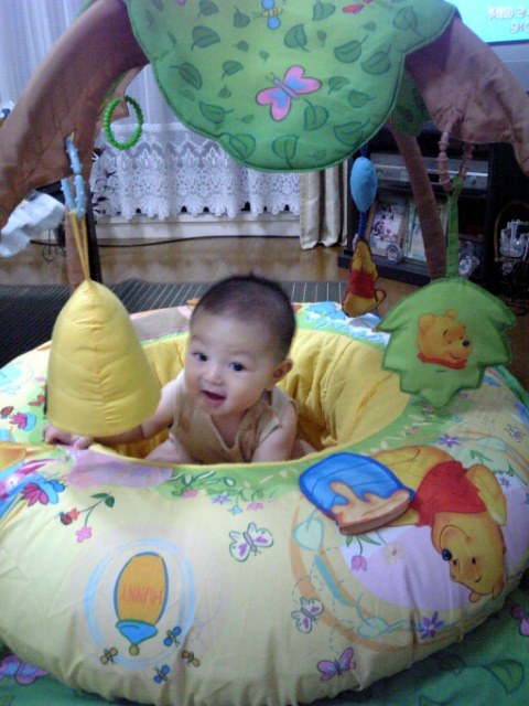 ここ数日で寝返りが上手になってきたよ〜。まだたまにしかうまく手を抜けなくてひとりで奮闘してるけど。